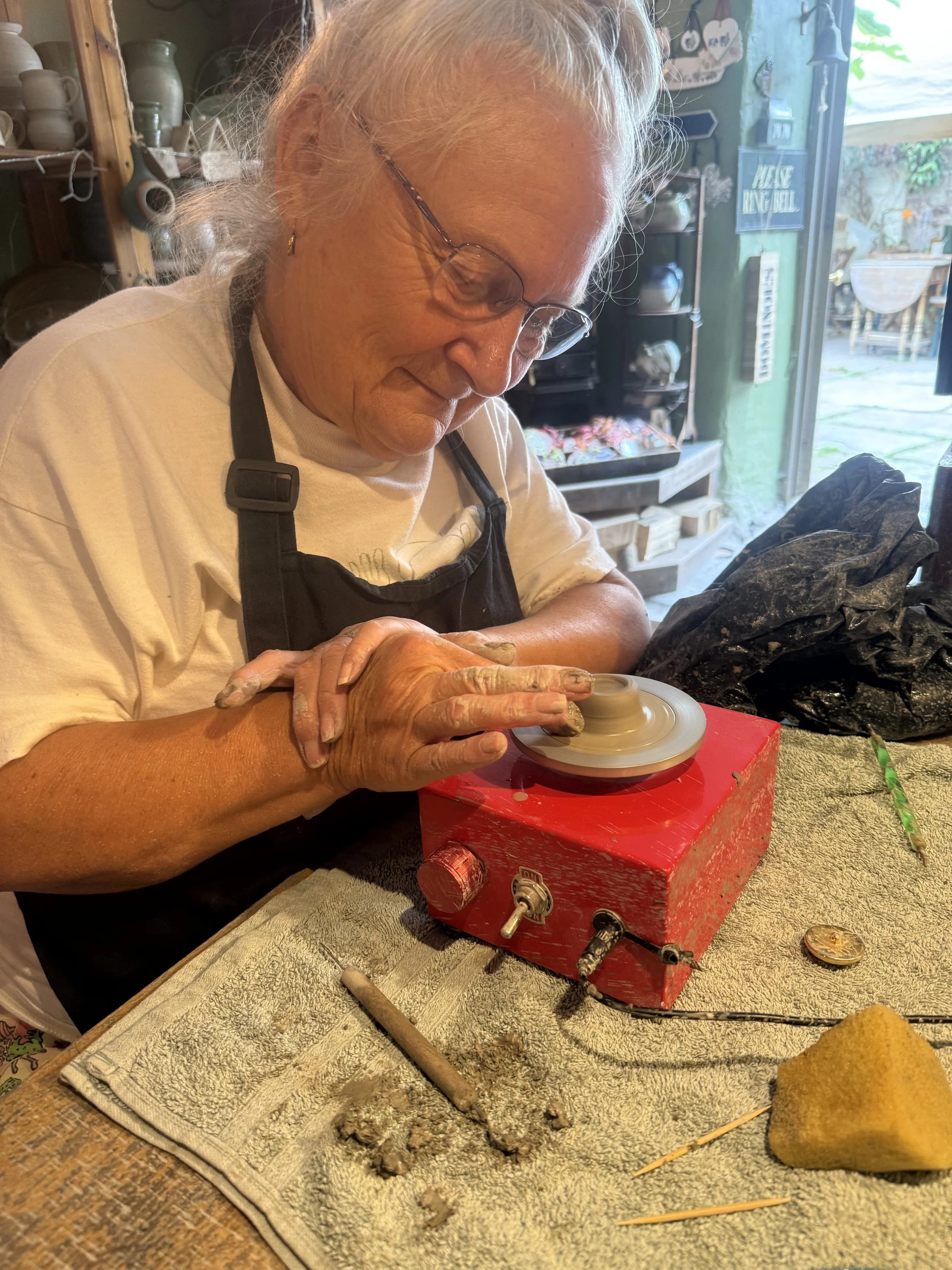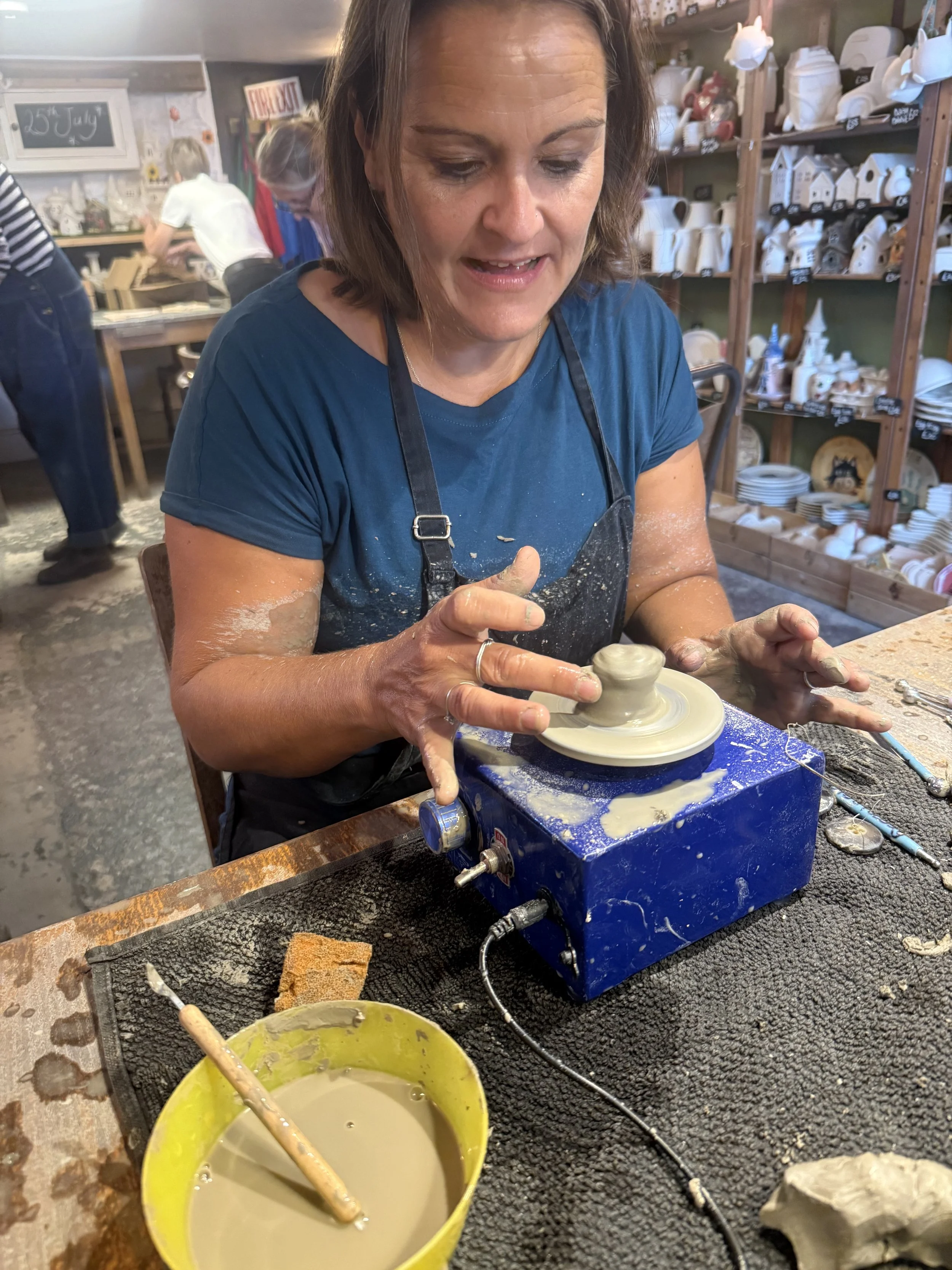 Potter’s Wheel Experience is £50per person for a 1.5 hour guided lesson. This includes a demonstration and step by step through the stages of throwing a pot. This usually involves making between three and six pots. The best three are then left at the pottery to be fired and glazed. Georgie will be there to guide and help every step of the way.